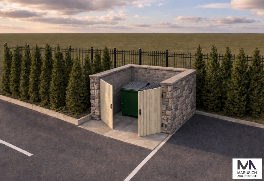 Erect trash enclosure, rehabilitate building